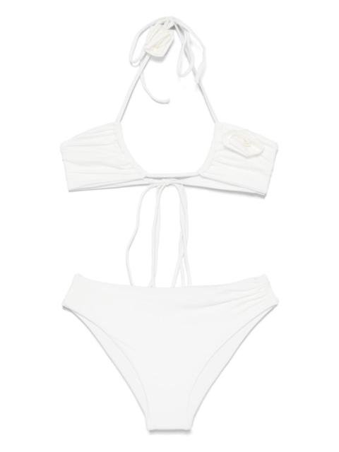 Quero bikini Highlights - White - Self-tie fastening - Full lining - High-waisted bottoms - Be mindful to try on swimwear over your own garments. Imported Composition Polyamide 78%, Spandex/Elastane 22% SIZE & FIT Measurement LENGTH 11.02 in(28 cm) WAIST 25.19 in(64 cm) BUST 57.08 in(145 cm) Washing instructions Hand Wash