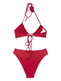Quero bikini Highlights - Brick red - Self-tie fastening - Full lining - High-waisted bottoms - Be mindful to try on swimwear over your own garments. Imported Composition Polyamide 78%, Spandex/Elastane 22% SIZE & FIT Measurement LENGTH 11.02 in(28 cm) WAIST 25.19 in(64 cm) BUST 57.08 in(145 cm) Washing instructions Hand Wash