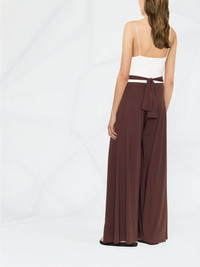 Vongola wide-leg trousers Maygel Coronel's Vongola trousers showcase a wide-leg silhouette with knot detailing to the front. The voluminous design features a tie to the rear for added interest. Imported Composition Polyamide 78%, Spandex/Elastane 22% SIZE & FIT Model measurements Height 5 ft 10 in(1.77 m) Bust/Chest 32.28 in(82 cm) Hips 34.64 in(88 cm) Waist 24.4 in(62 cm) Measurement BACK RISE 17.32 in(44 cm) FRONT RISE 11.02 in(28 cm) Hem Width 22.44 in(57 cm) HIPS 39.37 in(100 cm) INSIDE LEG 29.92 in(76 cm) WAIST 27.55 in(70 cm) FittingInformation This is a one size item Designed to be fitted at the waist and hips, loose over the leg Made with a mid-weight fabric Washing instructions Dry Clean Only