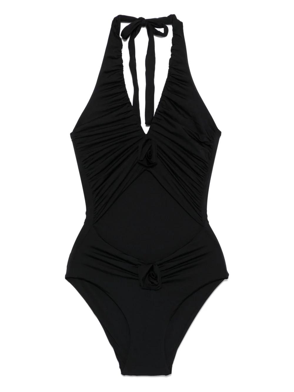 Zaguan swimsuit Highlights - Black - Halterneck tie fastening - Full lining - Cut-out detailing - Be mindful to try on swimwear over your own garments. Imported Composition Polyamide 78%, Elastane 22% SIZE & FIT Measurement BUST 23.62 in(60 cm) LENGTH 19.68 in(50 cm) WAIST 27.55 in(70 cm) Washing instructions Hand Wash