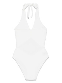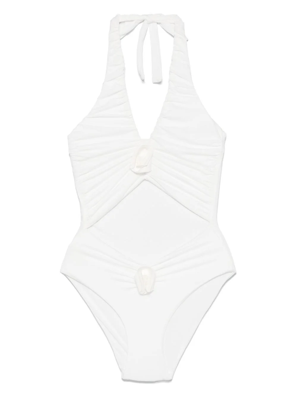 Zaguan swimsuit Highlights - White - Halterneck tie fastening - Floral applique - Cut-out detailing - Be mindful to try on swimwear over your own garments. Imported Composition Polyamide 78%, Elastane 22% Washing instructions Hand Wash