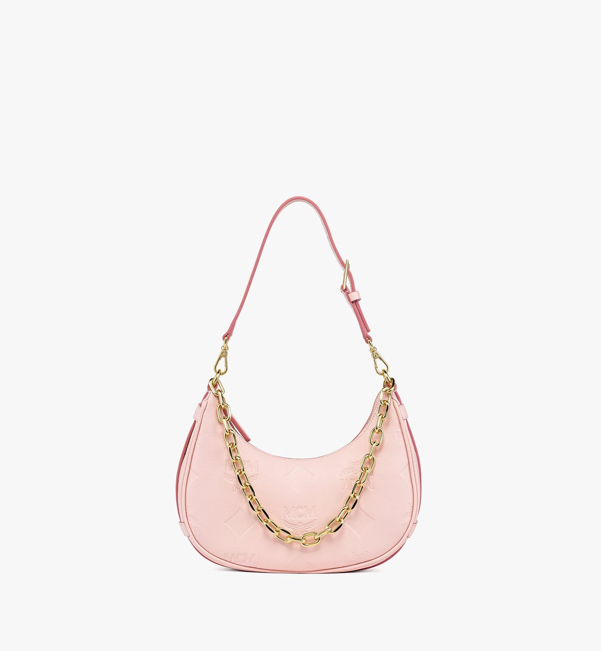 As exquisite as its lunar inspiration, this curvilinear hobo bag in Italian full-grain leather is imprinted with a maximalist interpretation of the renowned Visetos monogram. Carry by its chain handle or attach the accompanying leather strap for hands-free sophistication. - Detachable, adjustable leather strap - Chain handle - Embossed Maxi monogram motif - Zip closure - Interior slip pocket - Body: Natural full-grain leather - 16k gold-plated metal hardware - Microfiber lining with suede finish - Approximately 2.2 x 10.2 x 8.7 inches - 33.4" to 39.8" strap length, Handle drop: 9.8" - Made in Italy