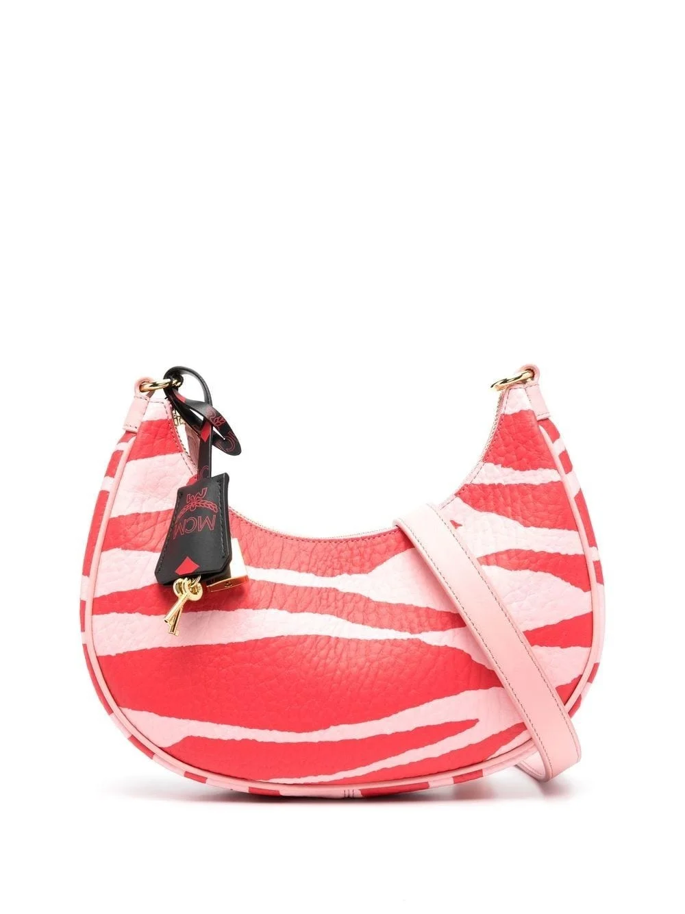 zebra-print leather shoulder bag blood red/rose pink calf leather textured finish zebra print logo pendant top zip fastening adjustable detachable shoulder strap top zip fastening internal slip pocket Imported Composition Outer: Calf Leather 100% SIZE & FIT Model measurements Height 5 ft 10 in(1.77 m) Bust/Chest 29.92 in(76 cm) Hips 34.25 in(87 cm) Waist 23.62 in(60 cm) Measurement DEPTH 2.75 in(7 cm) HEIGHT 4.72 in(12 cm) STRAP 20.07 in(51 cm) WIDTH 9.44 in(24 cm)