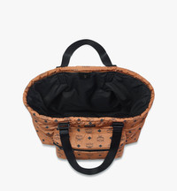 Guided by the design principle of versatility, the Munich House presents this lightweight tote bag in Italian nylon featuring a packable design that allows it to be transformed into a compact zip pouch. Presented in classic cognac, the billowy silhouette is finished with contrasting black leather accents. - Top handle straps - Packable design for conversion to zip pouch - Visetos monogram all-over print - Logo brass plate - Front zip compartment - Snap closure - Body: Italian nylon - Trim: Natural leather - Matte black metal hardware - Nylon lining - Approximately 5.9 x 15.4 x 13.0 inches - Handle drop: 11.4" - Made in South Korea