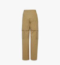 Woven from a fine Japanese cotton-nylon blend, these beige pants feature cargo compartments in line with the purpose-driven design ethos of the House. Emblematic of Munich, the Bavarian diamond is honored through geometric metal hardware on the rear pockets and leather belt loop strap. - Front side and rear pockets - Cargo compartments - Leather belt loop strap with diamond metal hardware - Body: 63% Cotton, 37% Nylon - Trim: 100% Polyester - Diamond metal studs on rear pockets - Comfortable fit - Female model is 176cm / 5'7" tall and wears size M. - Made in South Korea