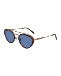 MCM cateye sunglasses in metal. Lens/bridge/temple (in mm): 5520135. Monochromatic lenses. Adjustable nose pads. Double nose bridge; straight brow bar. Classic logo detail at temples. Capped earpieces. 100% UVA/UVB protection. Made in Italy.