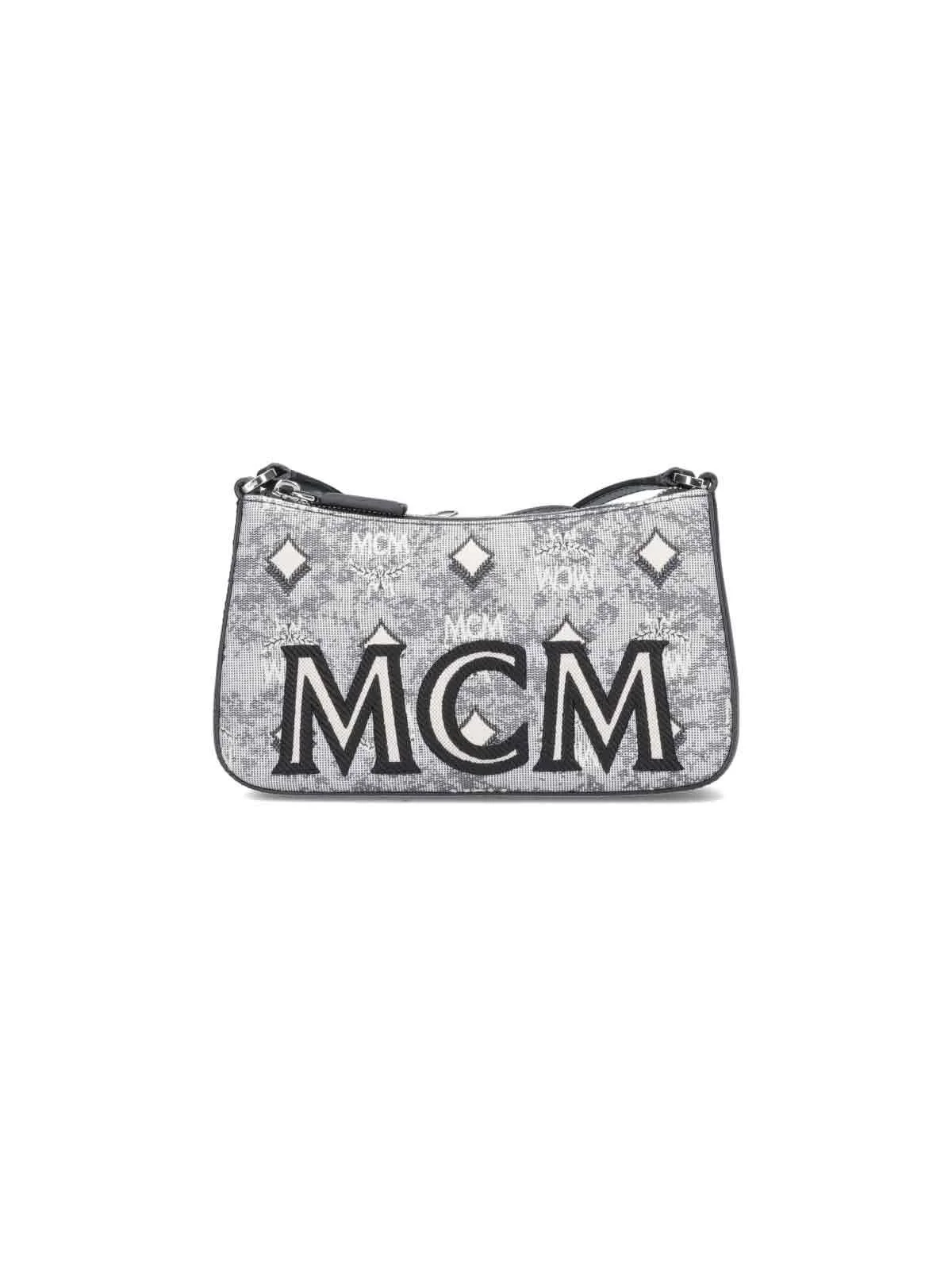 MINI JACQUARD BAG MCM, GREY COLOUR, ADJUSTABLE LEATHER SHOULDER STRAP, VINTAGE JACQUARD FABRIC, MONOGRAM PATTERN, ZIP CLOSURE, SILVER METAL HARDWARE, SINGLE MAIN COMPARTMENT. PRODUCT INFO PRODUCT CODE MWSBATQ01EG COMPOSITION: 50% POLYAMIDE, 40% COTTON, 9% POLYESTER, 1% VARIOUS - 50% POLYAMIDE, 40% COTTON, 9% POLYESTER, 1% VARIOUS - 13 X 22 X 5 CM - SHOULDER STRAP DROP: 103-119 CM - MADE IN KOREA - MWSBATQ01-EG