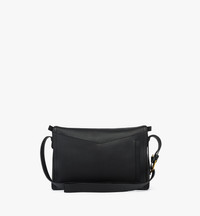A three-dimensional incarnation of the Bavarian diamond, finished with dual zip closures inspired by the sharp angles of the timeless Munich code. Sculpted from Italian calfskin leather, this shoulder bag boasts a geometric hobo design furthering its sculptural aesthetic. - Approximately 5.5 x 13.4 x 9.1 inches - Strap drop: 19.7" - Adjustable leather strap - Exterior pocket and zip compartment at back - MCM logo motif at front - Two-way angular zip closure - Interior zip compartment - Body: Italian calfskin leather - 24k gold-plated brass hardware - Microfiber lining with suede finish - Made in Italy Style # MWSFSAK01BK001