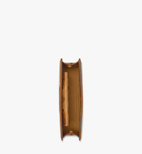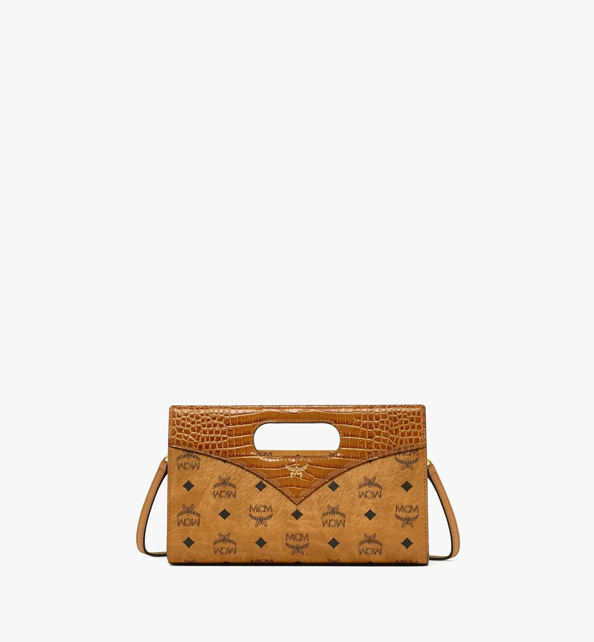 Inspired by the sharp contours of the Bavarian diamond, the Italian leather handles of this tote bag mirror the intricate ridging of crocodile skin through a special embossing technique. The geometric silhouette features a soft microfiber suede interior and is accompanied by an adjustable leather strap for hands-free elegance. - Approximately 3.0 x 10.6 x 6.7 inches - 45.5" to 51.8" strap length, Handle drop: 1.4" - Detachable, adjustable leather strap - Croco-embossed leather handles - MCM logo print at front - Magnetic tab closure - Interior pocket and zip compartment - Trim: Natural nappa leather - Body: Visetos monogram canvas - 24k gold-plated brass hardware - Microfiber lining with suede finish - Made in South Korea Style # MWREAAK01CO001