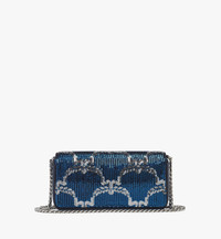 A noble insignia synonymous with MCM, the renowned laurels embellish this lamb leather shoulder bag through an ornamental Lauretos sequin monogram. The scintillating silhouette is secured by a Swarovski crystal-embellished Laurel logo closure. - Approximately 2.2 x 9.4 x 4.7 inches - Strap drop: 21.7" - Detachable chain strap - Crystal-embellished Laurel logo closure - Interior card slots - Body: Sequin Lauretos monogram lambskin leather - Silver-tone cobalt metal hardware - Lambskin leather lining - Made in South Korea Style # MWSEAAC01VC001