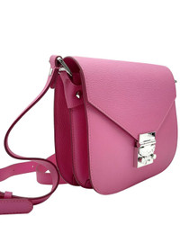 - About the brand: Luxury styles with a signature monogram. - Made in Italy - Patricia Leather Shoulder Bag in sugar pink leather and silver-tone hardware - Design details: made of leather, pushlock closure, adjustable shoulder strap, MCM hangtag - Measures 8.25in wide x 7in high x 2.75in deep - Pushlock closure - Please note: All measurements were taken by hand and are approximate; slight variations may occur. - Our products are 100% genuine. In some cases we purchase merchandise from trusted independent suppliers and not directly from the brand owner. In all cases we stand by the authenticity of every product sold on our site.