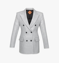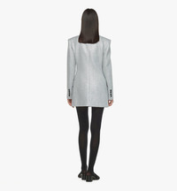This tailored jacket features accentuated shoulders for an authoritative look and a slim waist in line with timeless feminine sensibilities. The lurex tweed composition is interlaced with metallized fibers lending an aesthetic glimmer to the silhouette. - Double-breasted - Peak lapels - Power shoulders - Front flap pockets - Welt pocket at chest - Slim waist - Can be worn as a standalone dress - Lurex tweed with metallized fiber - Regular fit - Dry clean only. Do not bleach or tumble dry. Iron at max temperature of 110°C. Take care against rough surfaces and avoid snagging as fabric is delicate. - Made in South Korea Style # MFJESMM07TV038