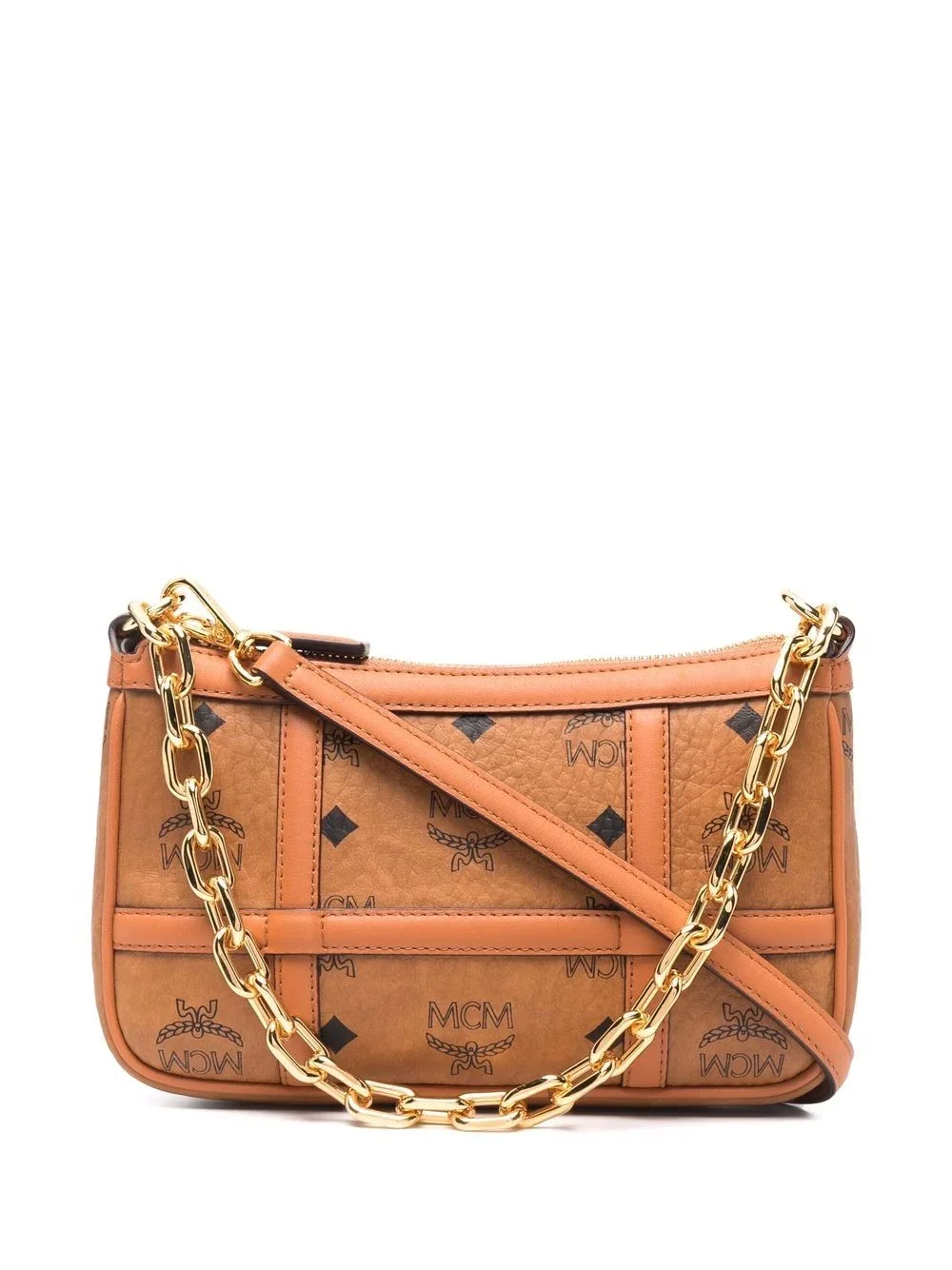 mini Aren shoulder bag brown canvas monogram print leather trim top zip fastening main compartment chain-link detailing gold-tone hardware detachable shoulder strap Imported Composition Outer: Leather 100%, Canvas 100% SIZE & FIT Model measurements Height 5 ft 10 in(1.78 m) Bust/Chest 33.46 in(85 cm) Hips 36.22 in(92 cm) Waist 23.22 in(59 cm)