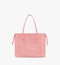 Two signature looks in one everyday icon. Crafted from Blossom Pink Visetos and nappa leather, the medium Liz shopper can be reversed to show off the hypnotic Cubic monogram pattern. Furthermore, leather drawstrings expand and contract the lightweight silhouette to match the dynamic needs of modern life. Greater versatility arrives in the form of a removable zip pouch, which thrives as a standalone purse on short trips. - Approximately 6.7 x 14.2 x 11.0 inches - Handle drop: 9.5” - Reversible design - Removable Visetos zip pouch with leather shoulder strap - Leather top handles - MCM logo plate on front - Protective leather feet - Nappa leather trim - Visetos monogram coated canvas - 24k gold-plated metal hardware - Cubic monogram cotton canvas lining - Made in South Korea Style # MWPCSVI01QZ001