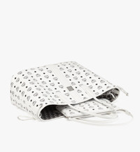 Two signature looks in one timeless icon. Sculpted from white Visetos and nappa leather, the large Liz shopper features a reverse face printed with the architectural Cubic monogram. A removable zip pouch is the perfect accompaniment, serving as a standalone purse on short trips. - Approximately 7.9 x 18.1 x 13.0 inches - Handle drop: 9" - Reversible design - Leather top handles - Removable Visetos zip pouch with leather shoulder strap - Side leather drawstring fastening - MCM brass logo plate on front - Protective leather feet - Nappa leather trim - Visetos monogram canvas - Silver-tone cobalt metal hardware - Cubic monogram cotton canvas lining - Made in South Korea Style # MWPCSVI02WT001