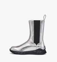 These Italian metallic calfskin leather Chelsea boots feature a distressed effect for a bold crushed aesthetic. The advanced design is finished with the Skywander outsole, renowned for its signature 3D Laurel-and-Ribbon patterning. - Distressed effect - Leather pull tab with MCM logo motif - Logo printed footbed - Ribbon motif at heel - Rubber sole with 3D Laurel-and-Ribbon motif - Removable OrthoLite® insole - Elastic side trim - Upper: 100% Metallic Calf Leather - Lining: 100% Calf Leather - Made in Italy