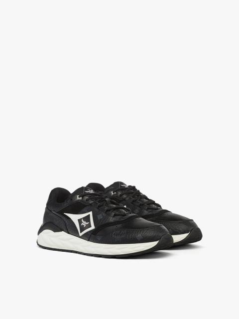 The Skywander is a runner-inspired sneaker sculpted from signature Visetos monogram canvas and Italian calfskin leather. Artistic expressions of classic codes complement the pair through a diamond logo patch on the upper, a 3D Laurel-patterned outsole, and a ribbon motif at the heel. - Logo diamond rubber patch on upper - MCM logo label on padded tongue - Laurel ribbon motif on heel - Logo-embossed calf leather heel tab - Rubber outsole with 3D Laurel motif - Trim: Italian calfskin leather - Upper: Visetos monogram canvas - Diamond metal eyelets - Mesh-infused calf leather lining - Avoid contact with water or substances containing alcohol (ex. perfumes, makeup or oil). Remove insock and dry at room temperature before cleaning. Clean outsole with a soft brush and upper with a slightly wet cotton cloth. - Made in Italy Style # MESESAH02BK036