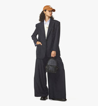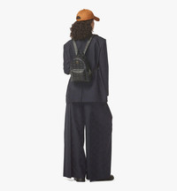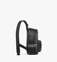 A micro sized version of the iconic Stark Backpack, it's crafted in signature Visetos coated canvas with a luxurious nappa leather trim and edgy studded details. Fits most iPhones, and all your essentials. - Approximately 4.1 x 8.5 x 10.2 inches - 28.5" to 35.5" strap length - Adjustable shoulder straps - Nappa leather trim - Two-way zip around closure - Front zip pocket - Cobalt hardware - Side open pockets with studded details - Interior open pocket and sleeve - Cotton twill lining - MCM logo plate - Made in South Korea Style # MMKEAVE16BK001