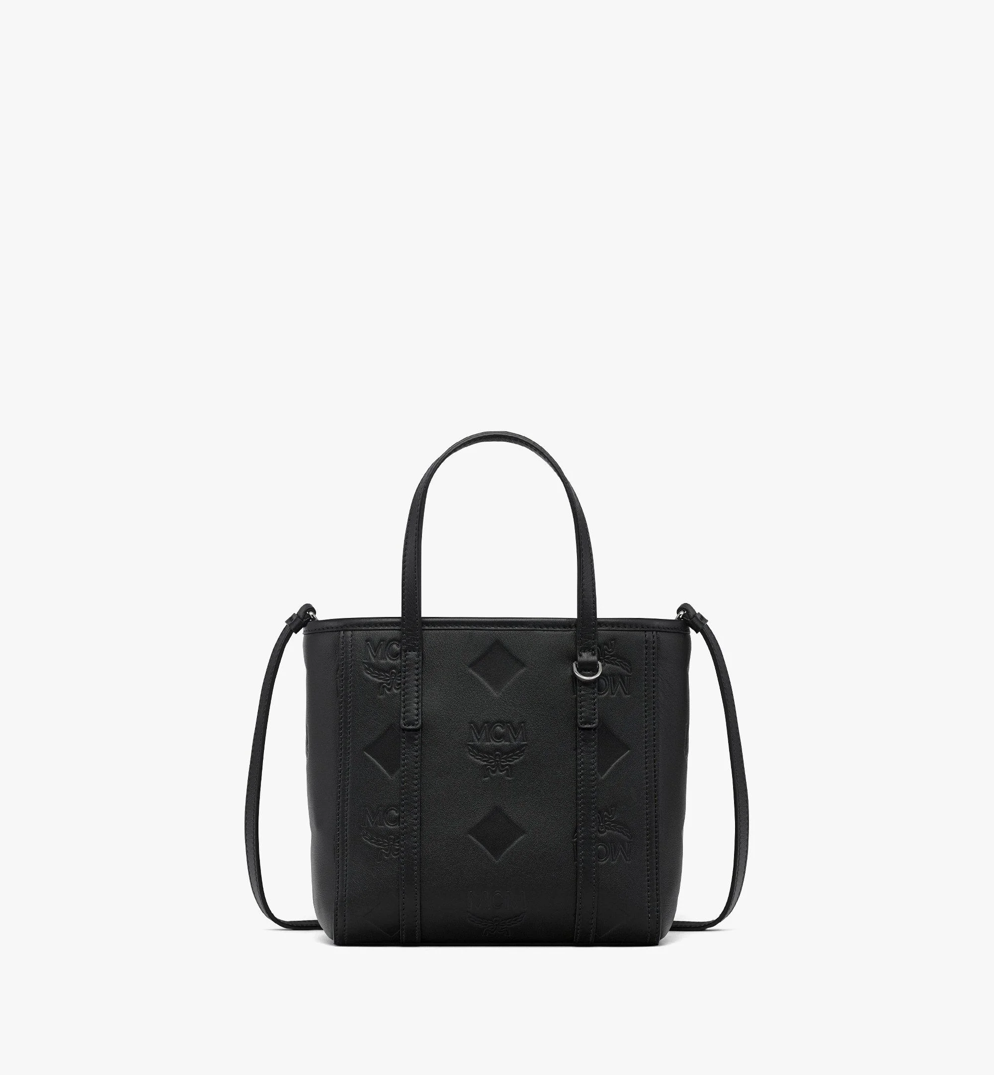 Sculpted from Italian full-grain leather, this Toni shopper is imprinted with the storied heritage of the Munich House through an upscaled rendition of the signature Visetos monogram. Carry the petite companion by its supple handles or opt for mobile elegance with the accompanying leather strap. - Detachable, adjustable leather strap - Leather top handles - Embossed Maxi monogram motif - Zip closure - Interior pocket with leather patch - Body: Natural full-grain leather - Silver-tone cobalt brass hardware - Microfiber lining with suede finish - Approximately 3.5 x 7.5 x 7.5 inches - 42.5" to 52" strap length, Handle drop: 4.1" - Made in Italy
