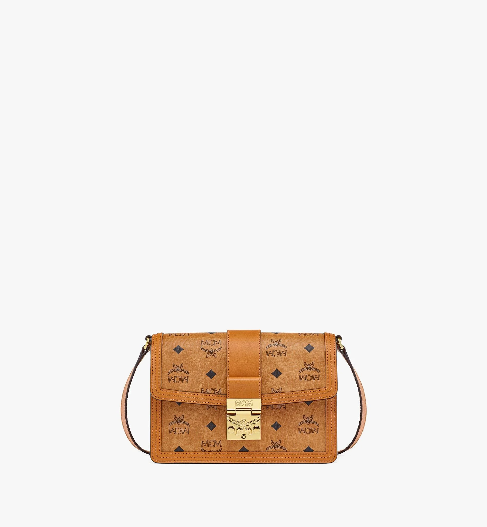 A slimmer approach to a heritage style, composed in Visetos coated canvas and framed by Vachetta leather. Secured by the iconic Laurel Lock, the small Tracy shoulder bag features a microfiber suede interior with soft leather sides that adapt to the variability of modern life. - Approximately 2.2 x 8.7 x 6.1 inches - 38" to 44" strap length - Adjustable leather shoulder strap - Exterior slip pocket at back - Laurel Lock closure with leather pull tab - Interior slip pocket and zip pocket - Vachetta leather trim - Visetos monogram coated canvas - 24k gold-plated metal hardware - Microfiber lining with suede finish - Made in South Korea Style # MWSCAXT01CO001