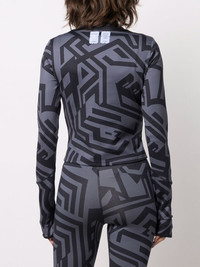 geometric-print top grey/black cotton blend geometric print high neck long sleeves stretch-design Imported Composition Polyester 100%, Cotton 53%, Polyamide 35%, Spandex/Elastane 12% SIZE & FIT Model measurements Height 5 ft 10 in(1.77 m) Bust/Chest 35.03 in(89 cm) Hips 35.03 in(89 cm) Waist 23.62 in(60 cm) FittingInformation This piece fits true to size. We recommend you get your regular size Cut for a slim fit Made with a mid-weight stretch fabric Washing instructions Machine Wash
