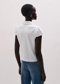 A sporty smart staple with a feminine edge, this polo shirt is framed by short cap sleeves which are gathered at the shoulder for soft volume. The collared neckline is equipped with a silver-toned zip for a customisable amount of coverage. FIT Slim fit Shirt neckline Zip neckline Cap sleeves Standard body length Level hem MODEL WEARS Model is a US size 4, wearing a US size 4 Model height is 5'10"" / 178cm Fits true to size COMPOSITION 100% Organic Cotton Crafted from a lightweight organic cotton jersey.