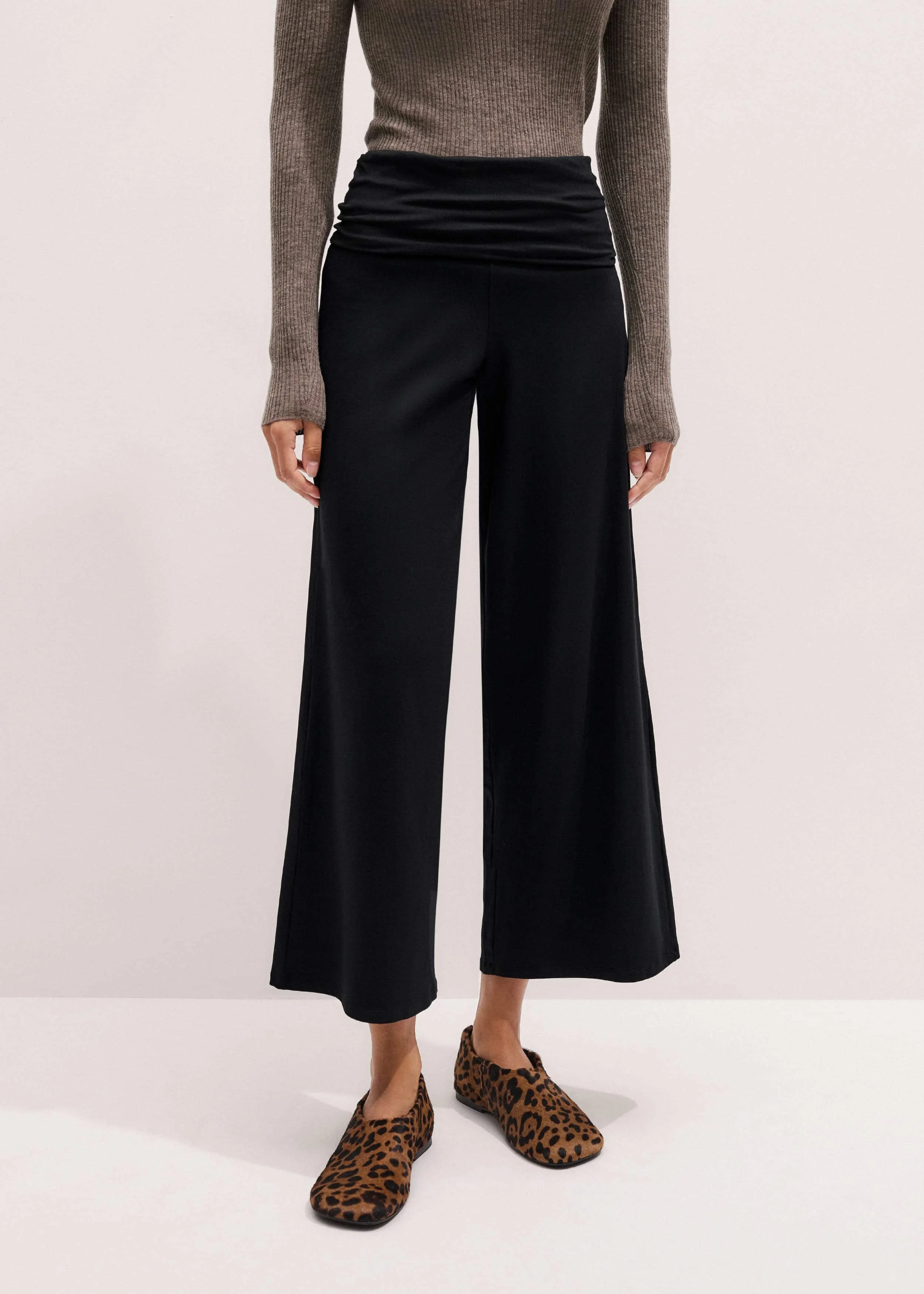 We've transformed our all-time iconic palazzo pant and cut it to a cropped length for a contemporary finish. Supple modal jersey makes for super comfort whilst the flattering roll-top waistband allows you to alter the length of the piece to perfect the fit. FIT Wide-leg shape Elasticated roll-top waist Cropped length MODEL WEARS Model is a UK size 8, wearing a UK size 8 Model height is 5'8" / 173cm This style is a cropped length of our signature palazzo pant, which can work as a full length for petite heights COMPOSITION Main fabric: 95% Modal, 5% Elastane Crafted from a modal jersey infused with stretch. This super-soft jersey is lightweight yet opaque, has an exceptionally soft feel, and is more resistant to pilling and shrinking.