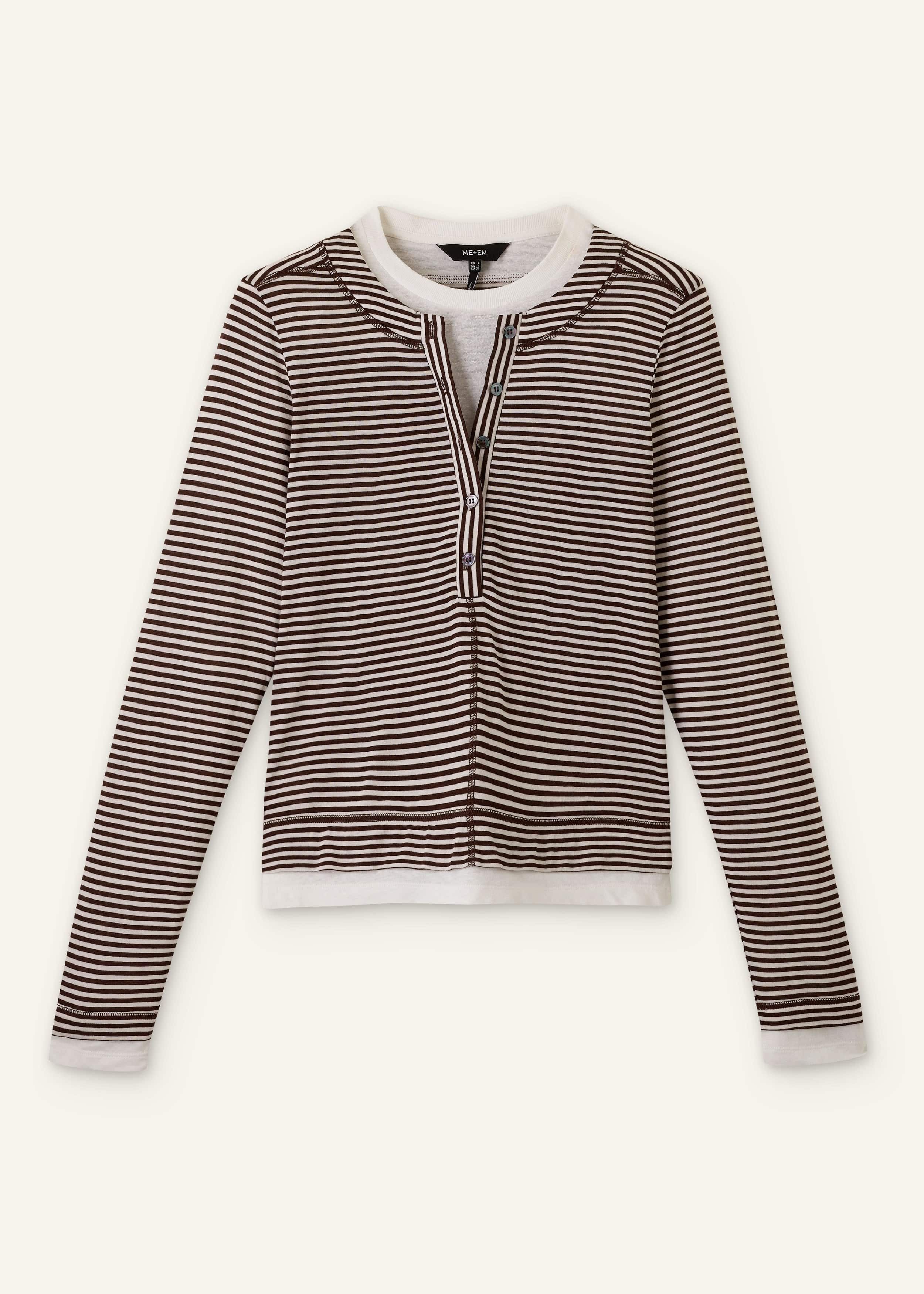 Embrace graphic interest and a forever favourite silhouette with this long-sleeved top. It’s cleverly crafted with a white trim that edges the collar, cuffs and hem to appear as two tops in one without the bulk. FIT Slim fit Double-layer look Button-up crew neck Full-length sleeves Level hem MODEL WEARS Model is a US size 4, wearing a US size 4 Model height is 5'9.5"" / 177cm Fits true to size COMPOSITION 73% Viscose, 27% Wool Crafted from a soft wool and viscose-blend jersey that's comfortable and soft. The lightweight feel means you get the layered look without a heavy, bulky feeling.