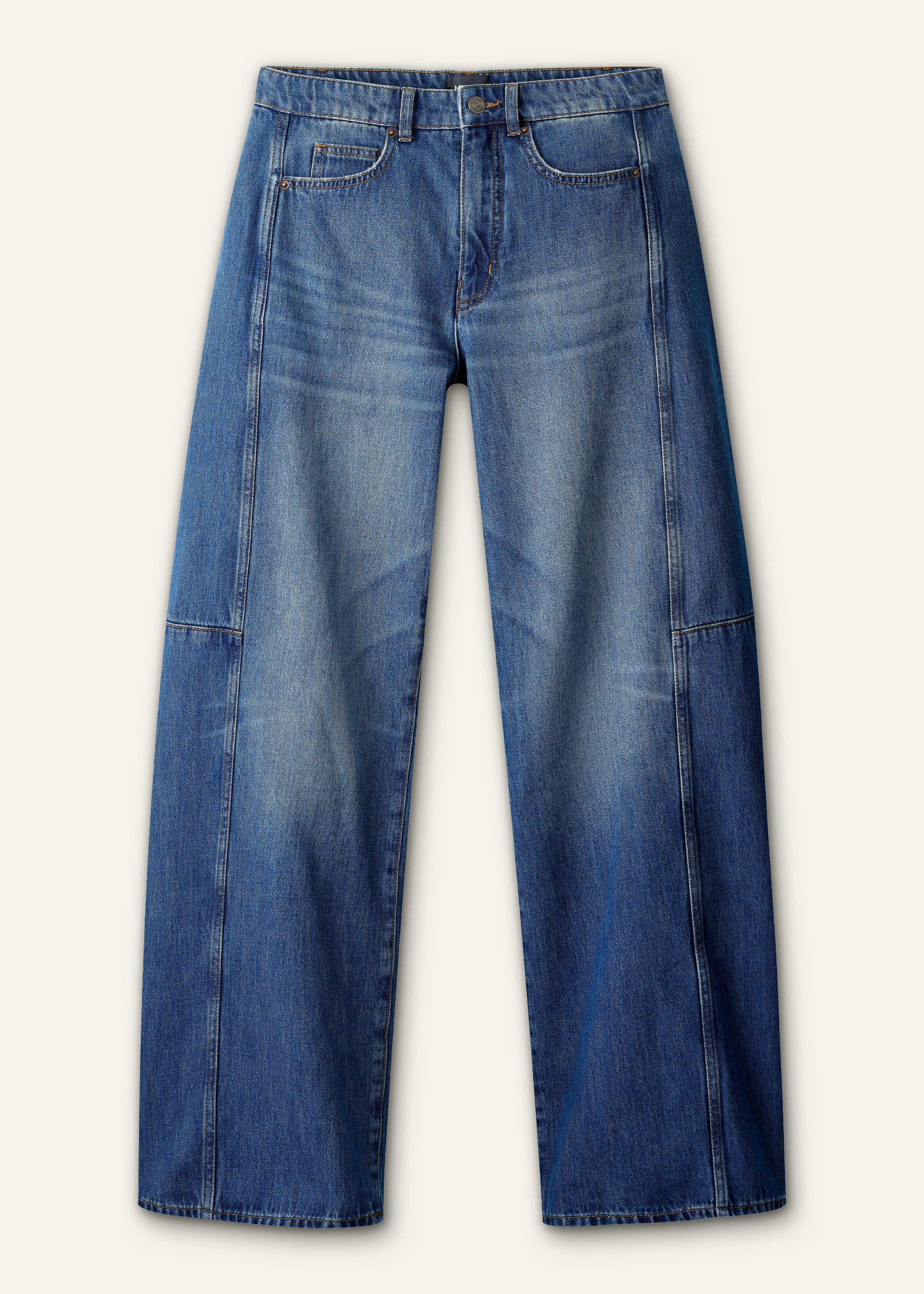 The go-to fit when you want a neat shape with the comfort of a relaxed, looser leg, this jean features a side seam that curves in as it travels down the leg, creating a tapered silhouette and elongating the leg. The faded blue wash adds an authentic, lived-in edge to the cotton denim. FIT Mid waist Relaxed fit Tapered leg Functional pockets Button and zip fly fastening Full length MODEL WEARS Model is a US size 4, wearing a size 26 Model height is 5'9.5” / 176cm Fits true to size COMPOSITION Main Fabric: 100% Cotton Pocket Lining: 65% Polyester, 35% Cotton Crafted from a lightweight yet rigid cotton denim for just the right blend of structure and softness.