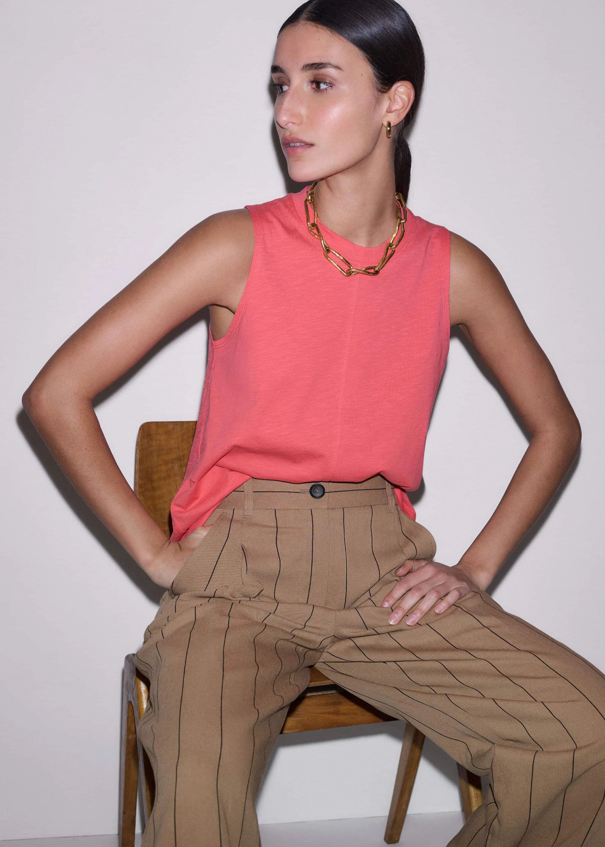 Our Candy Coral hue and cotton slub jersey combine to create this everyday top. It’s shaped to a swing silhouette for a naturally flattering drape, complete with a racerback design for a sporty edge. FIT Swing shape Sleeveless Slightly cropped body length MODEL WEARS Model is a US size 4, wearing a US size 4 Model height is 5'8"" / 173cm Fits true to size COMPOSITION 100% Organic Cotton Crafted from midweight cotton jersey with a soft, slubbed texture.