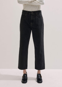 This jean is made from cotton denim in a warm black wash for a subtly warmer look. The clean, straight-cut leg makes the ultimate partner to oversized and fitted top silhouettes alike. FIT Mid rise Relaxed fit Straight leg Functional pockets Cropped length MODEL WEARS Model is a US size 4, wearing a size 26 Model height is 5'10” / 178cm Fits true to size COMPOSITION Main Fabric: 100% Cotton Pocket Lining: 65% Polyester, 35% Cotton Crafted from cotton denim with a midweight feel that holds its shape.