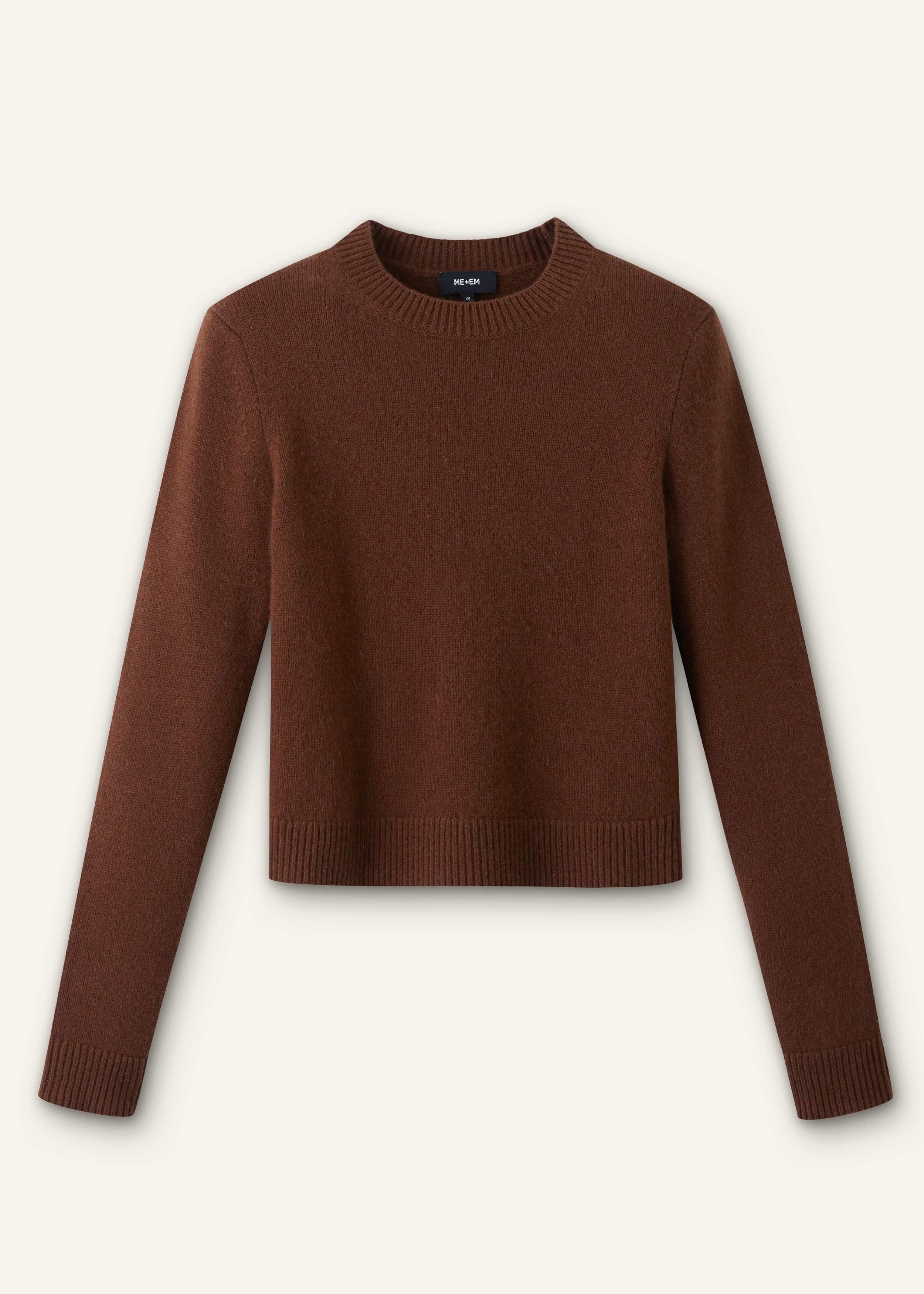 This sweater spotlights a Chesnut Brown and is made from luxuriously tactile cashmere. It falls to a cropped length to complement seamless styling with high-waist separates. FIT Straight fit Crew neckline Set-in armhole positioning Full-length sleeves Cropped body length Level hem MODEL WEARS Model is a US size 4, wearing a size S Model height is 5'9.5"" / 177cm Fits true to size COMPOSITION 100% Cashmere Crafted from luxuriously soft cashmere yarn, knitted in a plain jersey stitch with ribbed trims. We've worked hard to make sure this yarn is low pilling but this is a characteristic of soft natural yarns and can be restored with delicate washing according to the care label and the use of a knitwear comb. This product contains sustainably produced cashmere that has been verified under The Good Cashmere Standard® by AbTF.