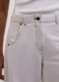 Introducing a new spring colorway of our relaxed engineered jean. This pair is made from lightweight, non-stretch denim with a soft hand feel and contrast topstitching that exaggerates the barrel shape and color-matches separates across our collection for cohesive outfit building. FIT Mid waist Relaxed fit Barrel leg Functional pockets Button + zip fly fastening Full length MODEL WEARS Model is a US size 4, wearing a size 26 Model height is 5’11” / 180cm Fits true to size COMPOSITION Main Fabric: 52% Viscose, 48% Cotton Pocket Lining: 100% Cotton Crafted from lightweight non-stretch cotton denim that has a soft hand feel.