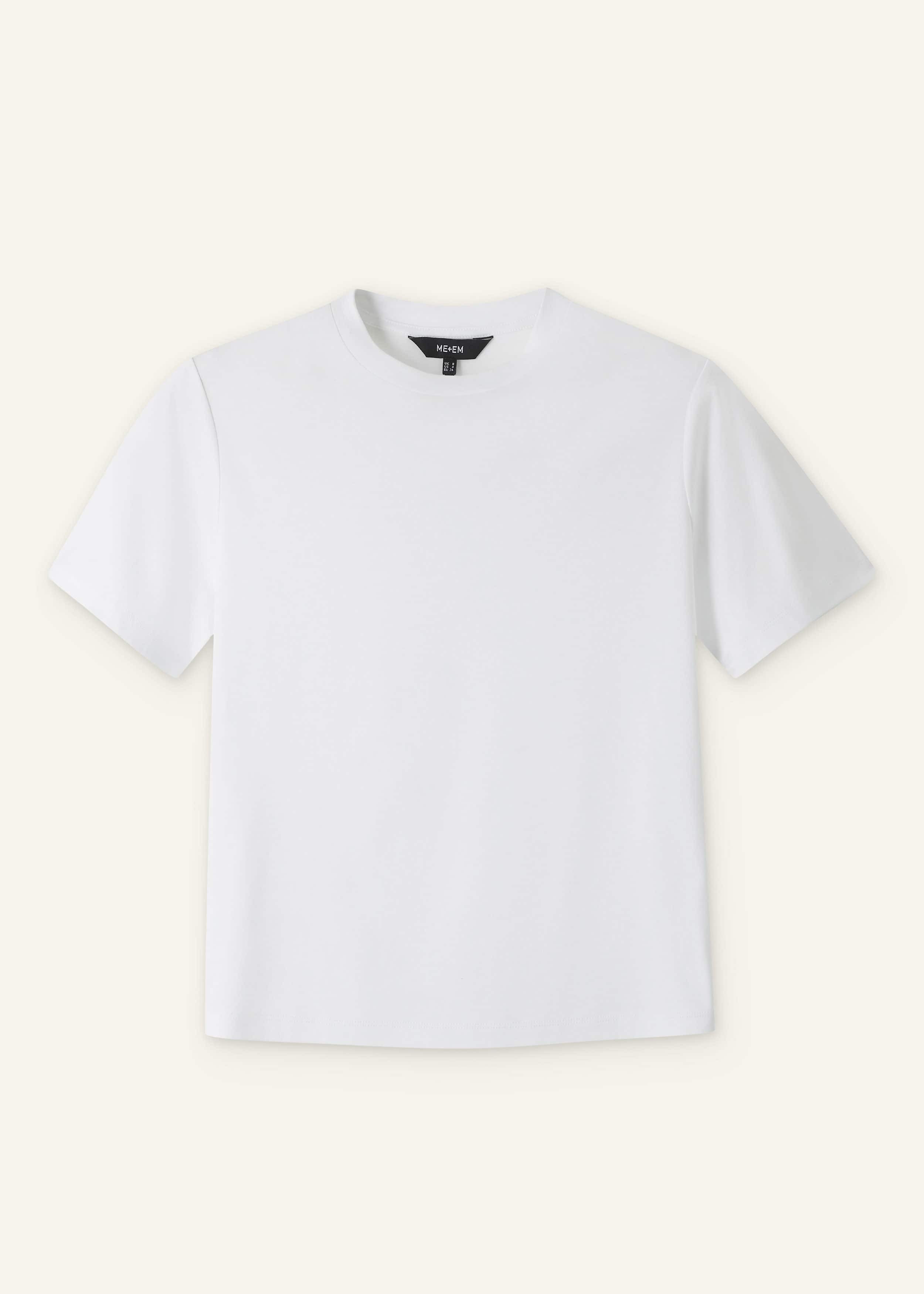 The perfect pairing: this tee + tailoring. Crafted from organic cotton, the Under Suit Tee sports a clean, considered fit that sharpens any outfit. The cleverly placed sleeves and level hem are engineered to layer seamlessly under blazers and tuck into the waistband of pants. FIT Relaxed fit Crew neckline Short sleeves Level hem MODEL WEARS Model is a US size 4, wearing a US size 4 Model height is 5'9.5” / 176cm Fits true to size COMPOSITION 100% Organic Cotton Crafted from a lightweight organic cotton jersey made from GOTS-certified fibres.