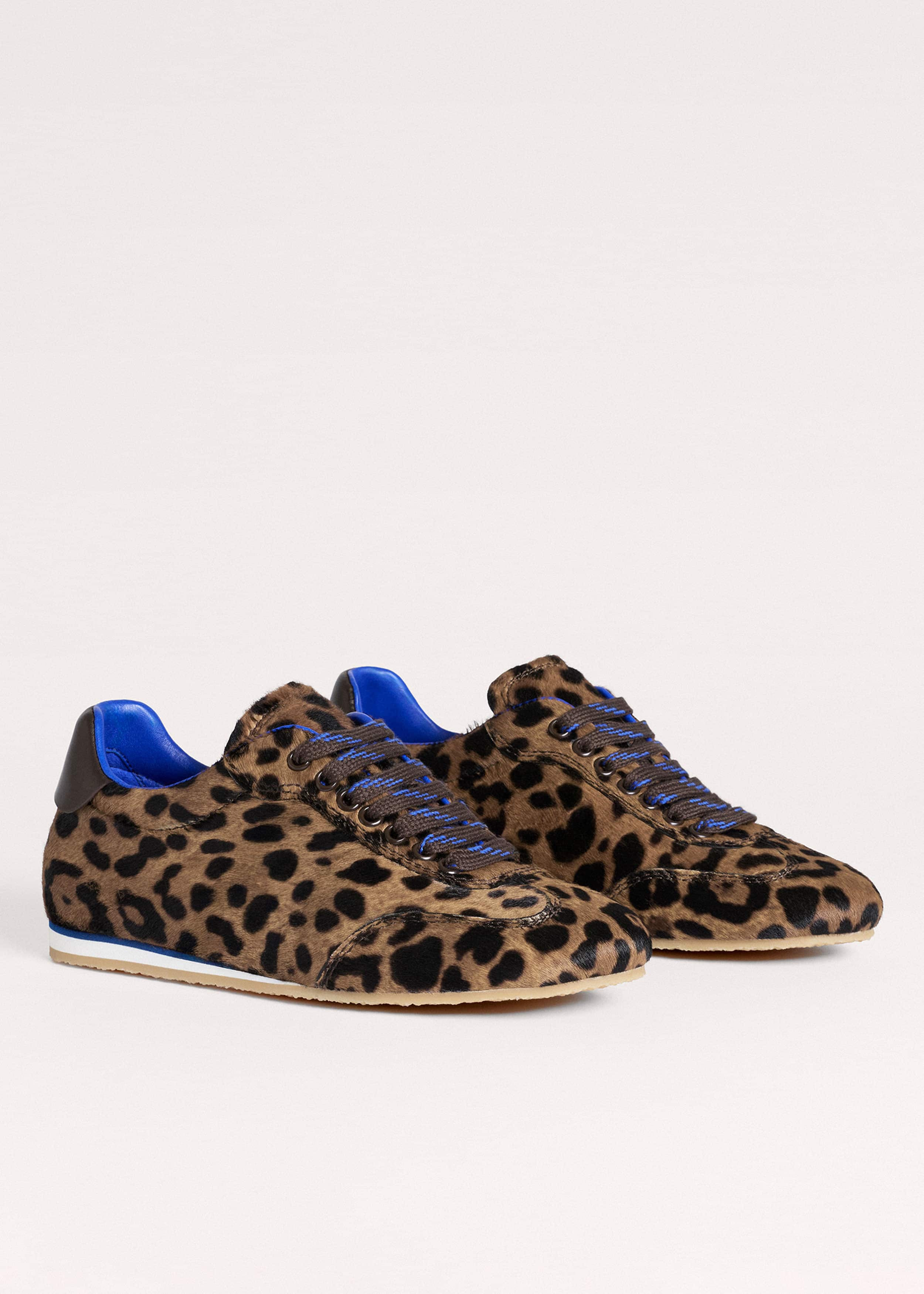 The Retro Runner, redefined in leopard print. Italian leather adds a tactile edge to this sneaker, whilst the internal concealed wedge adds extra comfort and a subtle lift. The contrasting blue insole and optional blue laces add an unexpected color pop. FIT Almond toe Internal, concealed wedge for extra comfort Chocolate/blue laces and chocolate brown laces Very flexible sole Leather back tab MODEL WEARS Sizes 36-42 Fits true to size COMPOSITION Upper: 100% Cow Leather Lining: 20% goat leather + 80% Cotton Sole: Synthetic Crafted from soft Italian leather with a natural texture. The Leather Working Group promotes responsible environmental practices across the leather supply chain. By purchasing this product, you are supporting Leather Working Group-certified tanneries. Due to the delicate nature of this leather, please take extra care in wear to minimise scuffing and loss of hair.