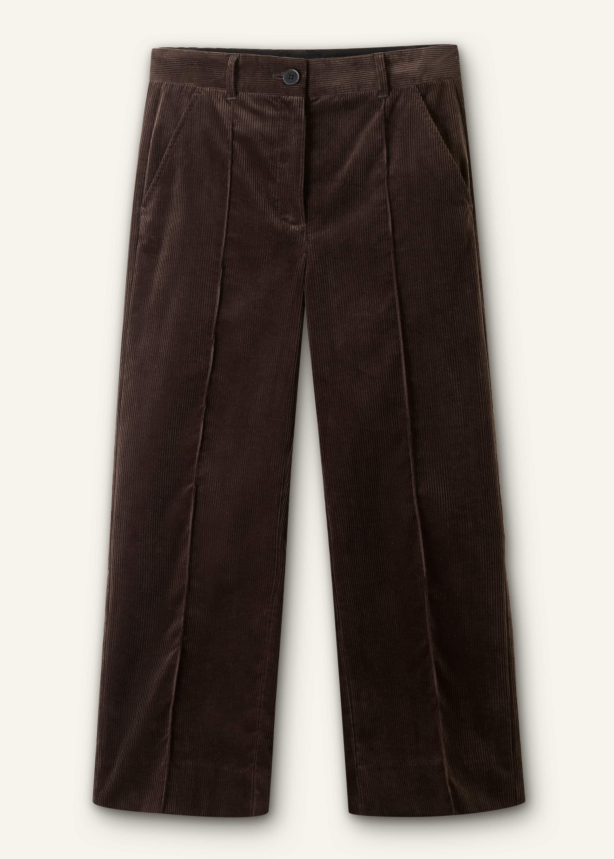 Italian cord with a plush, velvety finish adds a luxurious tactility to this pant. The cropped length accommodates full-length styling on petite heights, whilst the pressed front creases maintain and streamline the straight-leg silhouette. FIT Mid rise Tailored fit Functional pockets Straight leg Cropped length MODEL WEARS Model is a US size 4, wearing a US size 4 Model height is 5'7""/170cm Fits true to size COMPOSITION Main Fabric: 100% Cotton Pocket Lining: 100% Recycled Polyester Crafted from Italian cotton corduroy with a plush, velvety finish.
