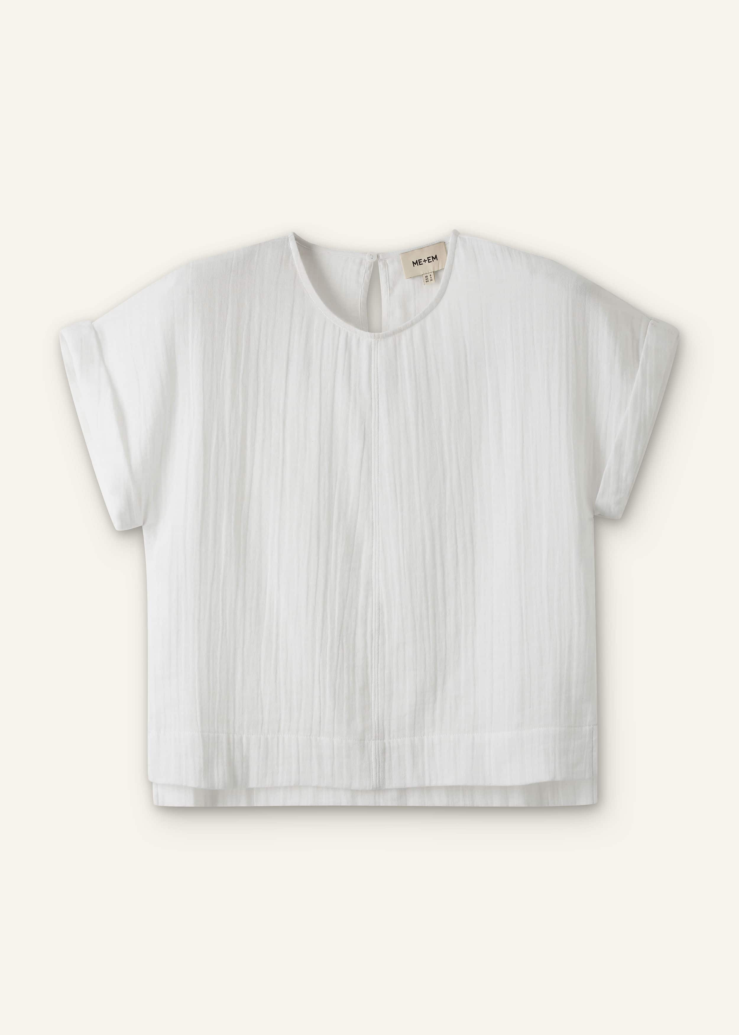 The ultimate throw-on-and-go summer staple, this T-shirt is crafted from lightweight cotton cheesecloth, which is naturally textured and breathable. Wear it with the matching Wide-Leg Pant for an effortless head-to-toe look. FIT Regular length Straight body shape Crew neckline Short sleeves with turn-up cuffs MODEL WEARS Model is a US size 4, wearing a US size 4 Model height is 5'8"" / 173cm Fits true to size COMPOSITION 100% Cotton Lightweight and breathable, this double-gauze cotton cheesecloth fabric has a naturally textured surface for an iron-free finish.