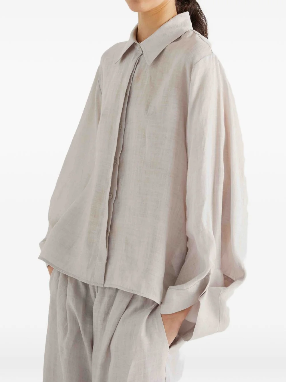 long-sleeve shirt Highlights - Beige - Long sleeves - Button front - Point collar Imported Composition Fabric 100% Washing instructions Read Manufacturer Guidelines