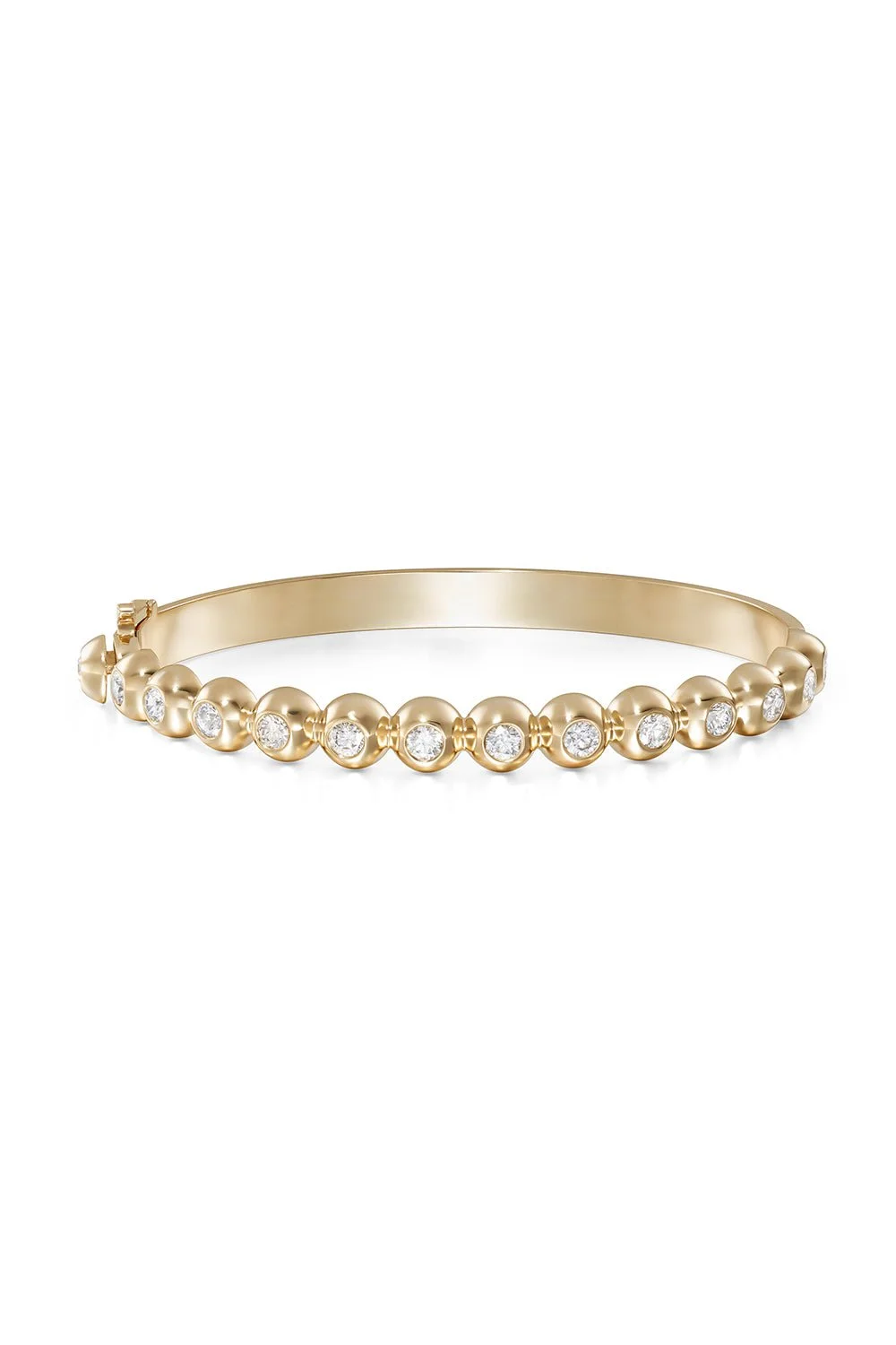 DETAILS AND INSIGHT Melissa Kaye audrey diamond hinged bangle bracelet in yellow gold. 18K Yellow Gold 1.47ctw Diamonds 2.25" D Style B2316A-Y