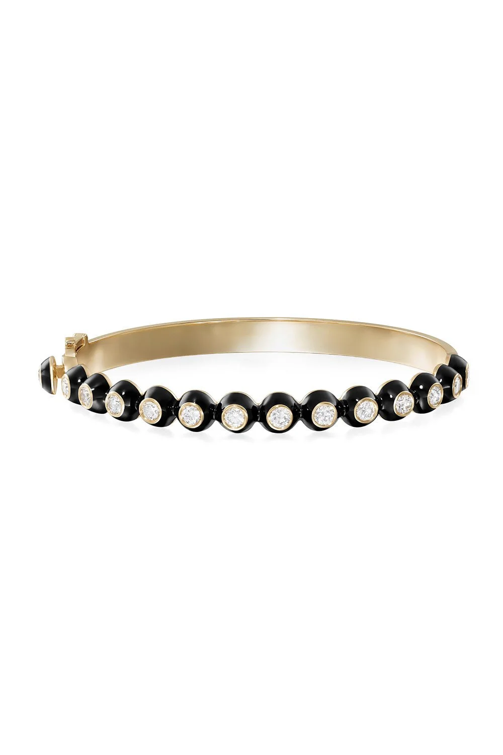 DETAILS AND INSIGHT Melissa Kaye audrey hinged bangle bracelet in yellow gold. 18K Yellow Gold, Enamel 1.47cts diamonds Style B2317A-Y