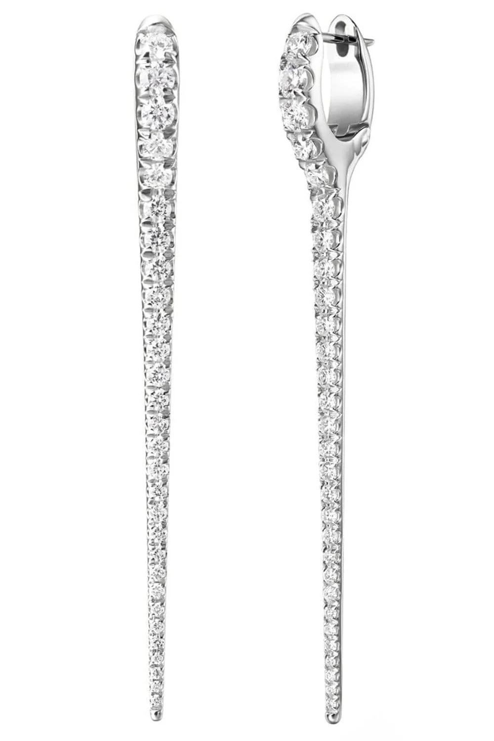 DETAILS AND INSIGHT Melissa Kaye Lola Needle Earrings Large from the Lola Collection 18k white gold with diamonds (1.9 tcw) 60mm length Made in New York, NY Production lead time 3 weeks None