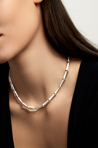 Lola Partial Diamond Linked Necklace - White Gold