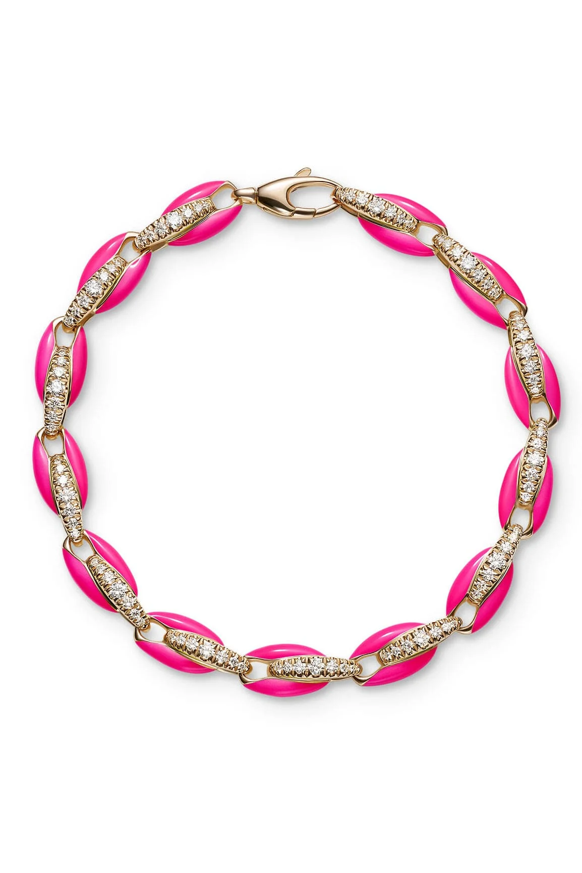 DETAILS AND INSIGHT Melissa Kaye neon pink ada diamond bracelet in rose gold. 18k Rose Gold, Enamel Diamonds 1.05ctw 7" L Style B2002C-P