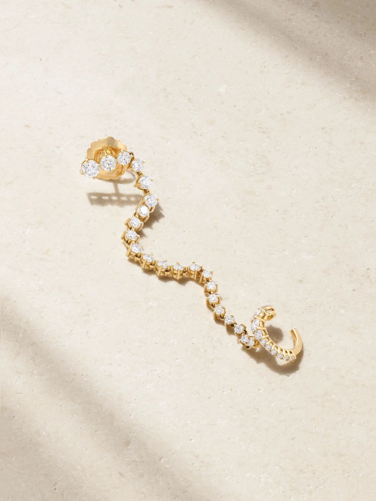 Melissa Kaye's 'Sadie Draped' earring is comprised of a stud and cartilage-hugging cuff that are connected by a strand of graduating diamonds for a beautifully draped effect. It's made from gleaming 18-karat gold and is just as suited for formal events or date nights.