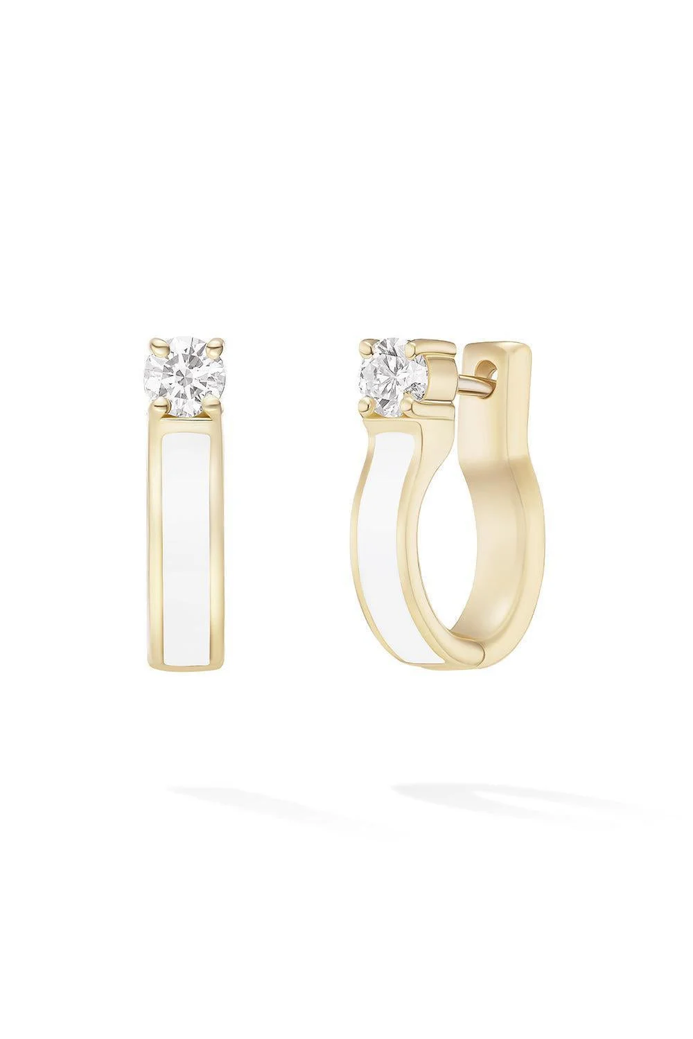 DETAILS AND INSIGHT Melissa Kaye small white honey diamond hoop earrings in yellow gold. 18K Yellow Gold, Enamel Diamonds 0.34 tcw 8mm D Style E2408B-Y