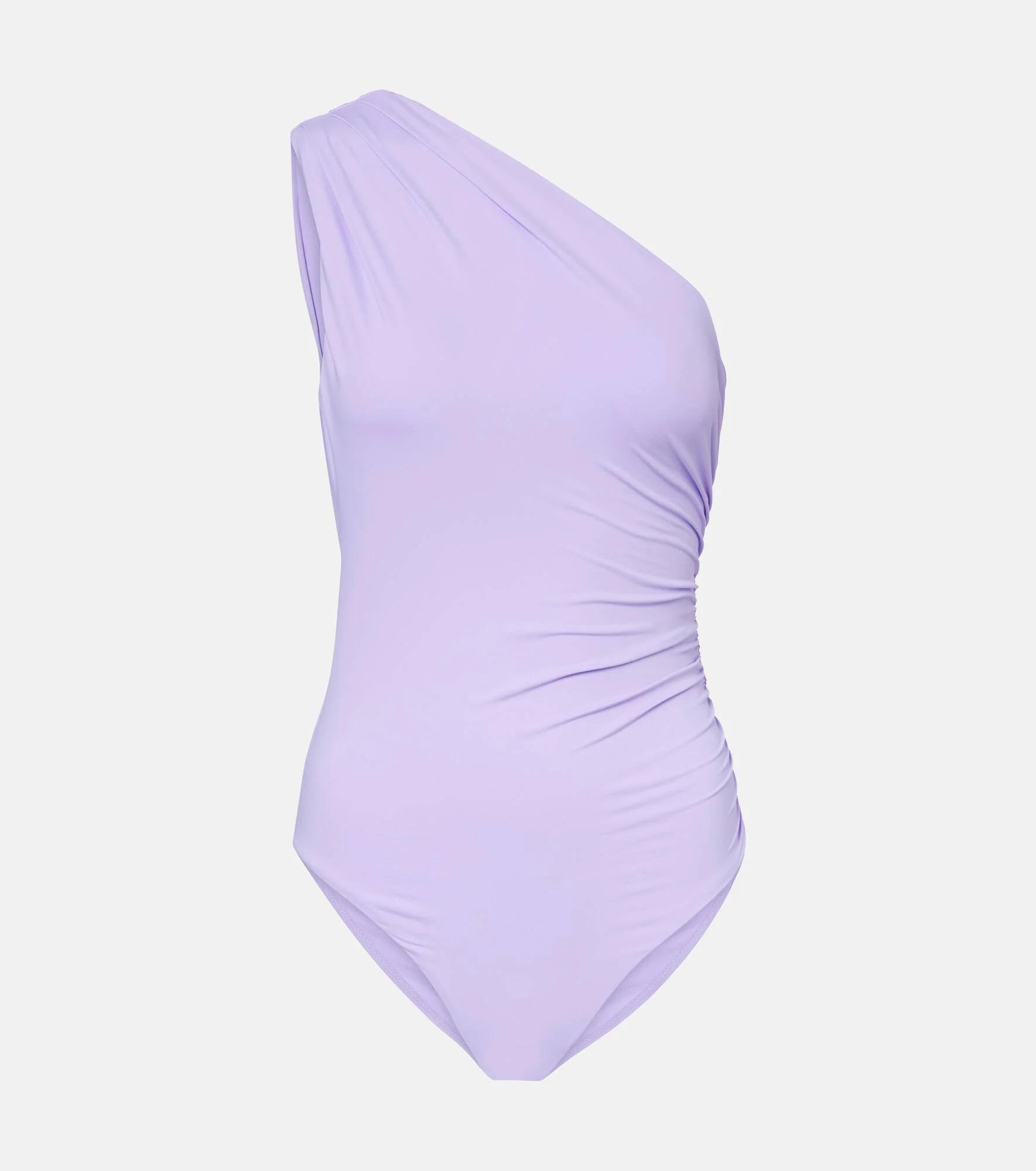 After working as a swimwear model, Melissa Odabash used her experience to create designs that are equal parts stylish and comfortable. Crafted in Italy, the Arizona swimsuit features a one-shoulder design and flattering side ruching. Product Details - Material: 86% polyamide, 14% elastane - Care instructions: hand wash - Made in Italy - Designer color name: Lavender - Item color: purple - Item number: P01064371 Size & Fit - True to size - Removable padding - Medium-cut leg - The model seen in the picture is 178cm-5'10", cup size B, and wearing a size IT 40
