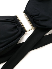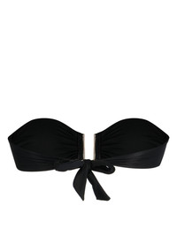 Barcelona bandeau bikini top Highlights - Black - Stretch-design - Gold-tone hardware - Ruched detailing - Bandeau style - Rear tie fastening - Strapless - Be mindful to try on swimwear over your own garments. Made in Italy Composition Polyamide 86%, Elastane 14% Washing instructions Hand Wash