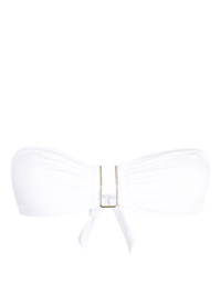 Barcelona bandeau bikini top Highlights - White - Stretch-design - Removable pads - Gold-tone hardware - Bandeau style - Rear tie fastening - Strapless - Be mindful to try on swimwear over your own garments. Made in Italy Composition Polyamide 91%, Elastane 9% Washing instructions Hand Wash
