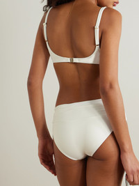 Inspired by the clean lines of architectural estates in the LA neighborhood it's named after, Melissa Odabash's 'Bel Air' bikini top is centered by a sleek gold-tone embellishment. It's cut from smooth, gently ruched Italian stretch fabric and has underwired cups for optimal support. Find the matching briefs in our edit. Size & Fit - Fits true to size, take your normal size - Underwired for shape and support - Model is 175cm/ 5'9", bra size 32B and is wearing a UK 8 Model measurements: - Bust: 84cm/ 33” - Waist: 65cm/ 25.5” - Hip: 91cm/ 36” Details & Care - White stretch-polyamide - Clasp fastening at back - 91% polyamide, 9% elastane - Hand wash - Lotion, sunscreen, oil and chlorine can cause discoloration of this item; this is not a manufacturing defect. Please follow care instructions to keep your swimwear in the best condition