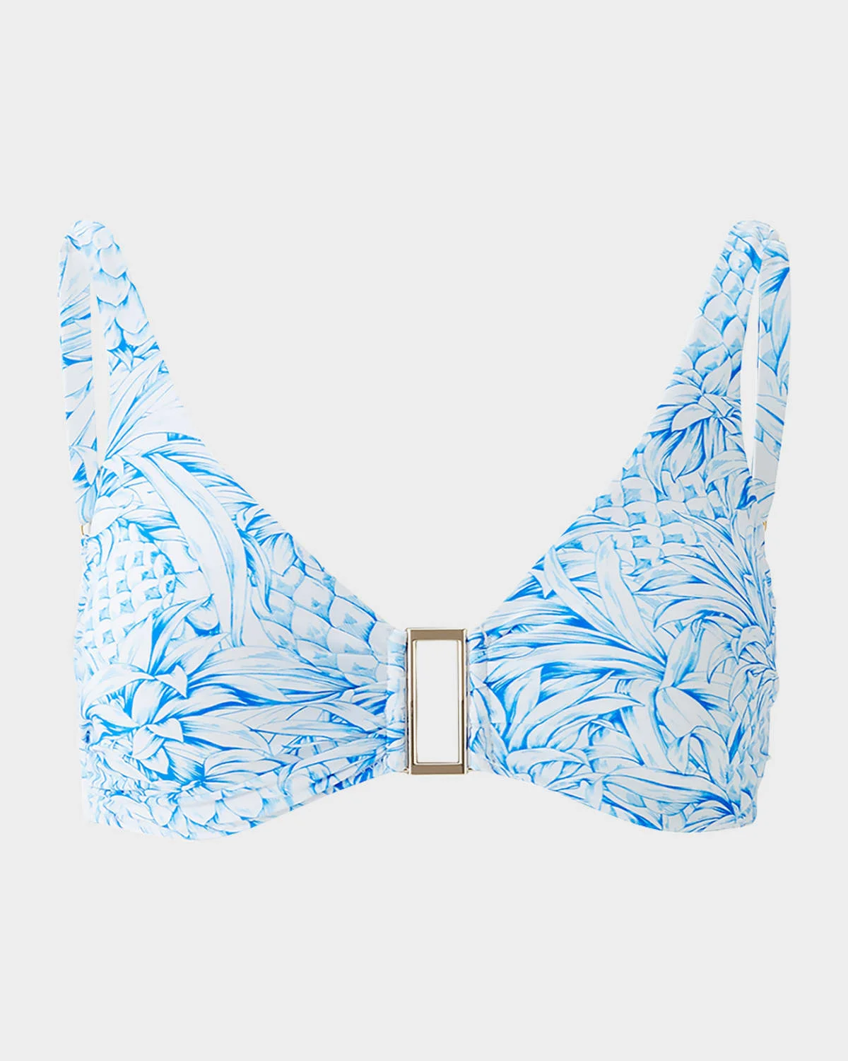 Fastened with central rectangle hardware, the "Bel Air" bikini top by Melissa Odabash features a bold pineapple print & nbsp; Scoop neckline Adjustable shoulder straps Mid-back clasps Nylon/polyamide/elastane Fully lined Hand wash Made in Italy Bottoms sold separately